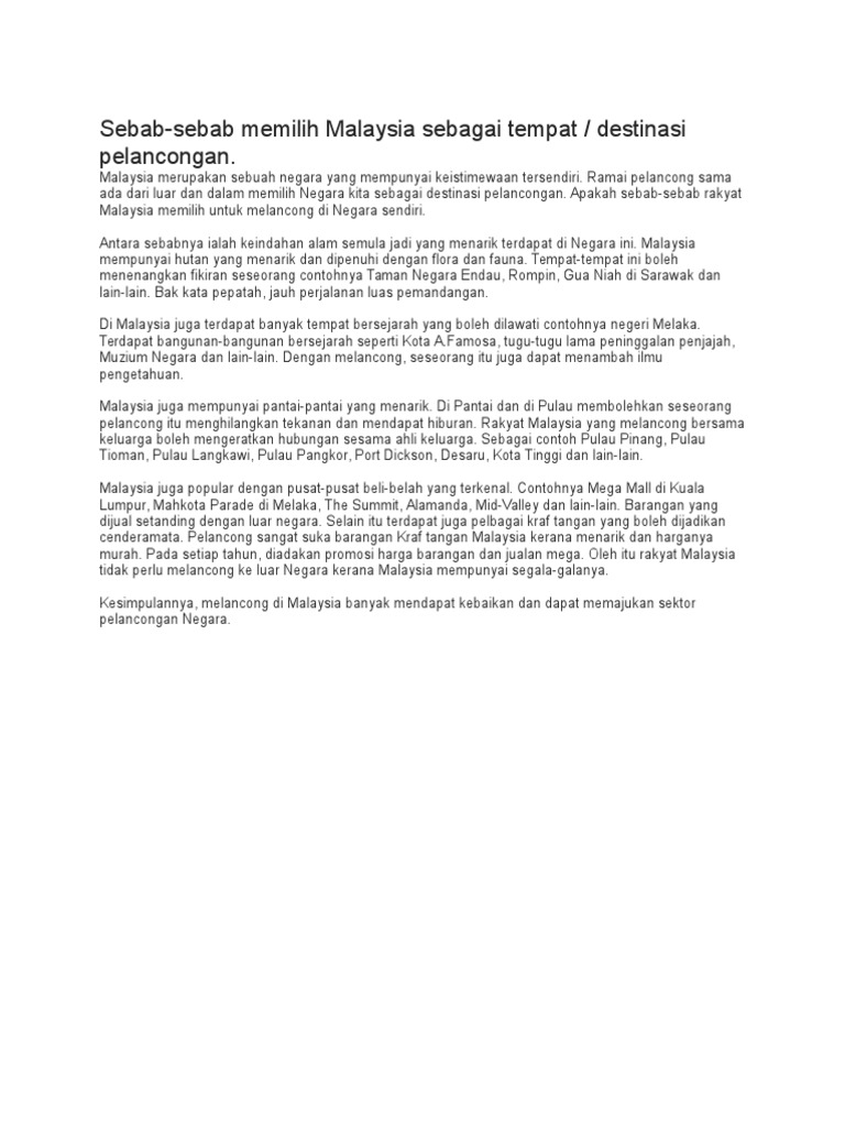 Destinasi Pelancongan Contoh Karangan Spm Spesial 2017 Paling Ramai