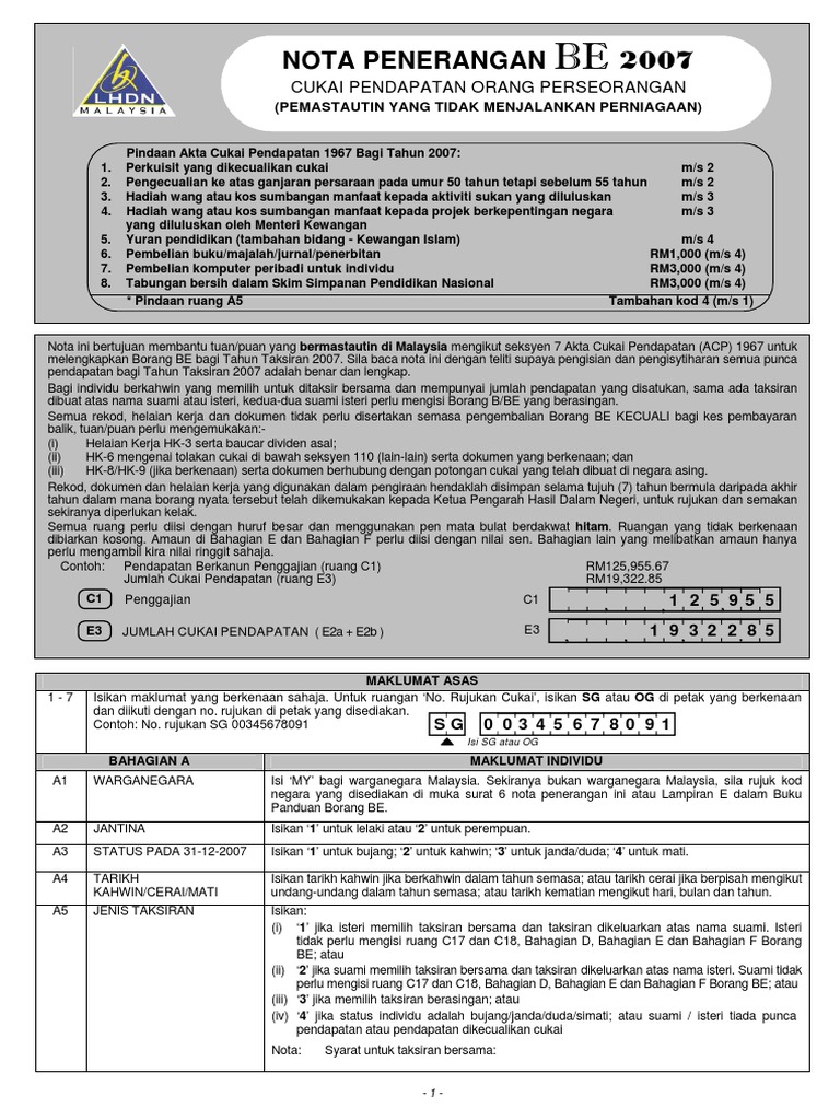 Http Www Hasil Gov My Pdf Pdfam Nota Penerangan Be 1 Pdf
