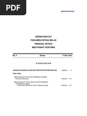 Dewan Rakyat Parlimen Ketiga Belas Penggal Kelima Naskhah Belum Disemak Dewan Rakyat Parlimen Ketiga Pdf Document