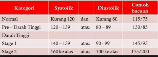 Kadar Tekanan Darah Tinggi Mengikut Umur