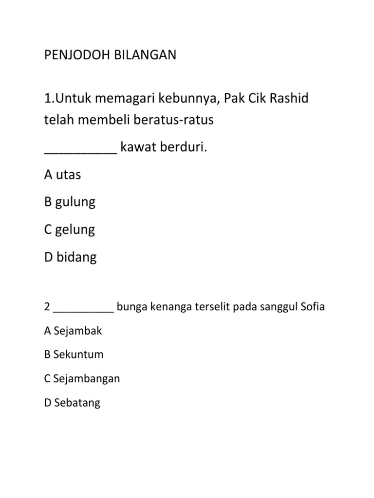 300 Soalan Penjodoh Bilangan Pdf Pages 1 31 Text Version Anyflip