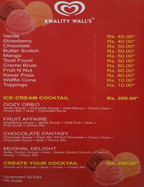 Kwality Wall S Swirl S Menu Menu For Kwality Wall S Swirl S Sector 31 Noida