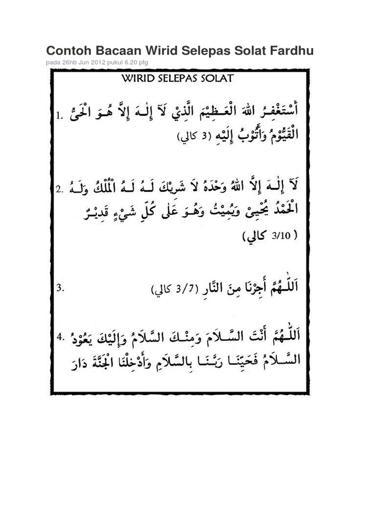 Doa Wirid Selepas Solat 1 Doc Document
