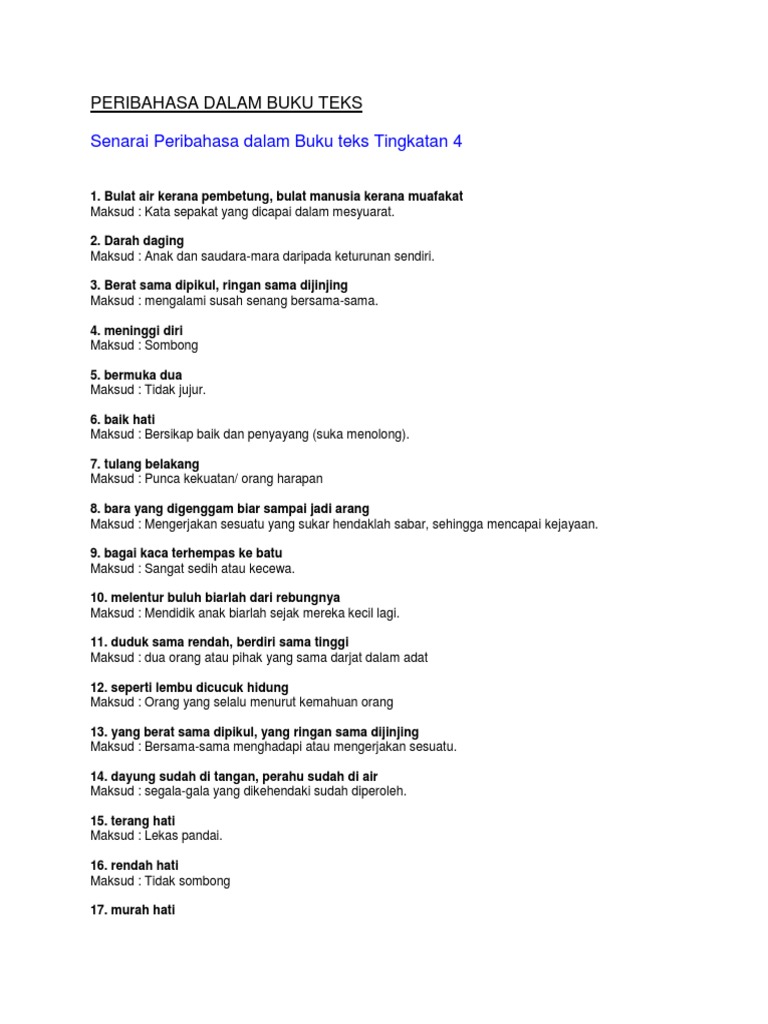 Senarai Peribahasa Dalam Buku Teks Tingkatan 4